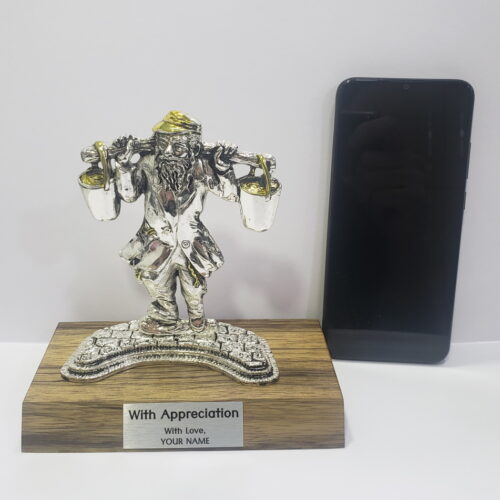Table Decor Statue Shtetl Hassidic Jewish Water Bucket Carrier – Zinc & Sterling Silver 925 Plating