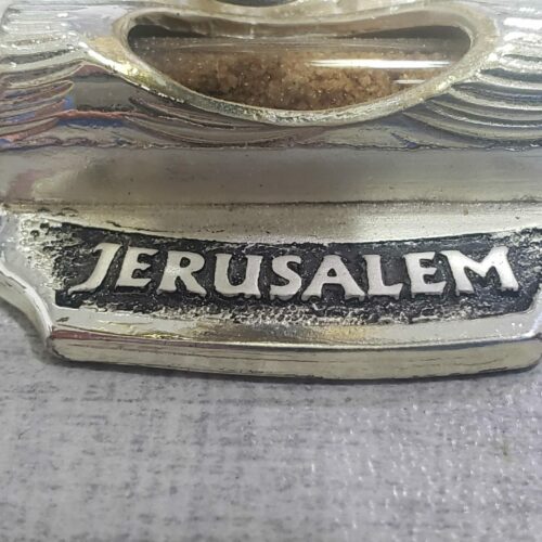The figurine and base are made of premium zinc metal and its’ plating is STERLING SILVER 925. The figurine is diecast embossed, meaning it’s 3D, and not flat. The cross is made of laser-cut iron and gold color plated and at the bottom is a capsule with AUTHENTIC Holy Land soil.