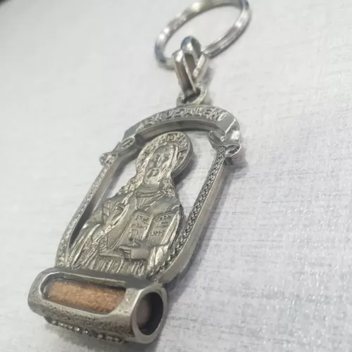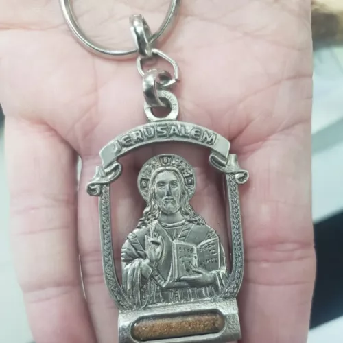 ‘Our Savior’ Sterling Silver 925 Plated Jerusalem Jesus Keychain & Holy Land Soil