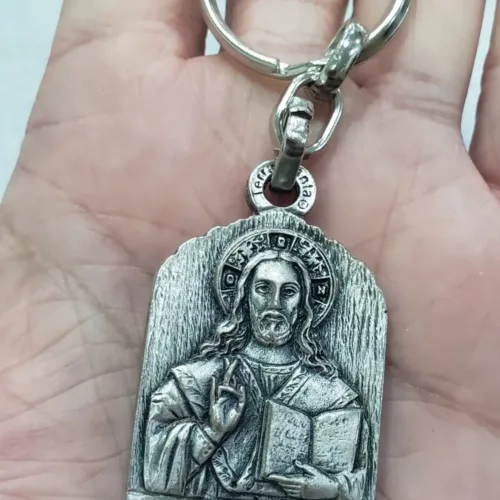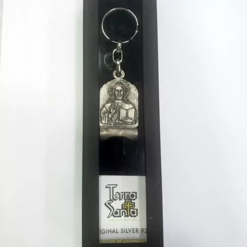 Jesus ‘Our Savior’ Keychain – Made of Zinc, Sterling Silver Plating & capsule of Holy Land Soil