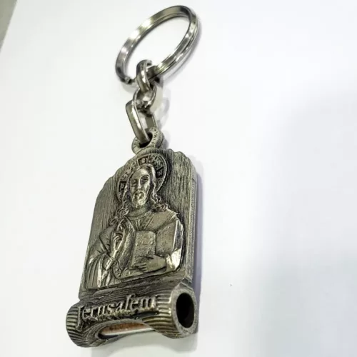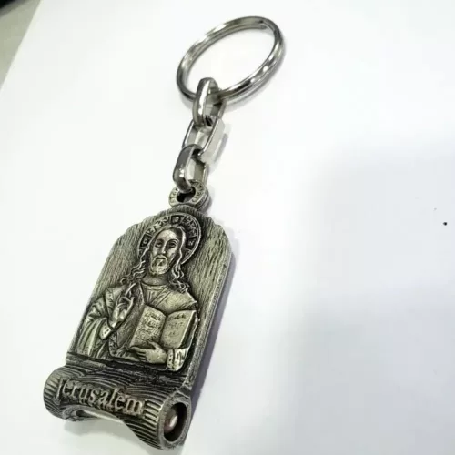 Keychain is made of zinc alloy metal and the plating is STERLING SILVER 925. At the bottom are cobblestone-like ancient Jerusalem “Bricks” and the Jerusalem inscription, and inside of it is REAL Holy Land soil in a capsule. The keychain itself is diecast embossed, meaning it’s 3D and not flat, and you can actually feel the image when touching it and the ring hook is made of stainless steel.