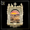 The medal is made of zinc alloy metal and the outer plating is Sterling Silver ‘925’. The image of Jerusalem is embossed, meaning it’s 3D and NOT flat and that you can really feel if you touch it. The box is made of authentic Holy Land olive wood, and the medal itself lies on soft protective velvet.