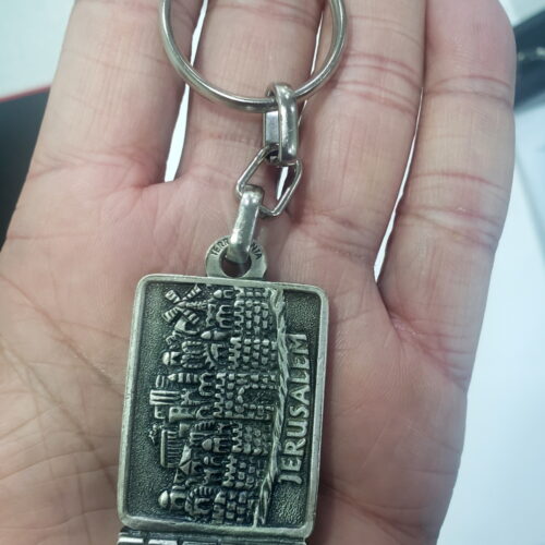 The keychain is made of zinc alloy metal and the plating is STERLING SILVER ‘925’. At the bottom, under the Jerusalem inscription, are cobblestone-like old Jerusalem “Bricks”, and inside of it is REAL Holy Land soil in a capsule. The image of the keychain itself is diecast embossed, meaning it’s 3D and not flat, and you can actually feel the it when touching it.