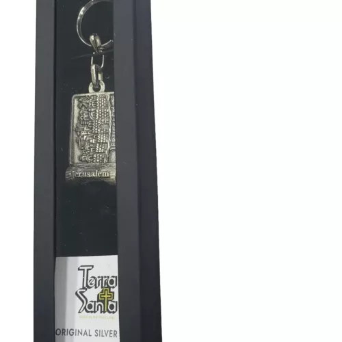Jerusalem Old City and Walls Keychain – Made of Zinc, Sterling Silver Plating & Holy Land Soil