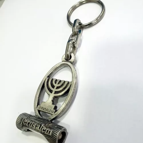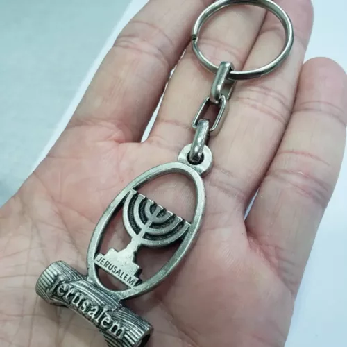 Menorah Keychain, with the Jerusalem inscription at the bottom of it.