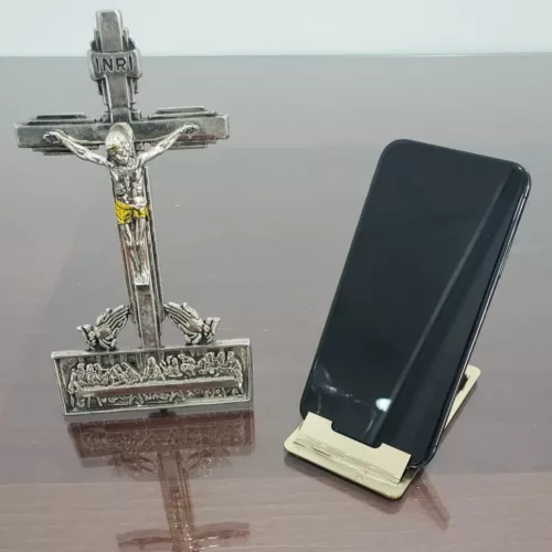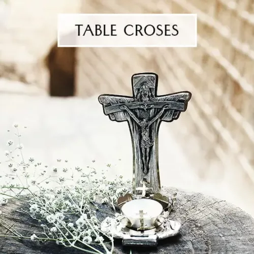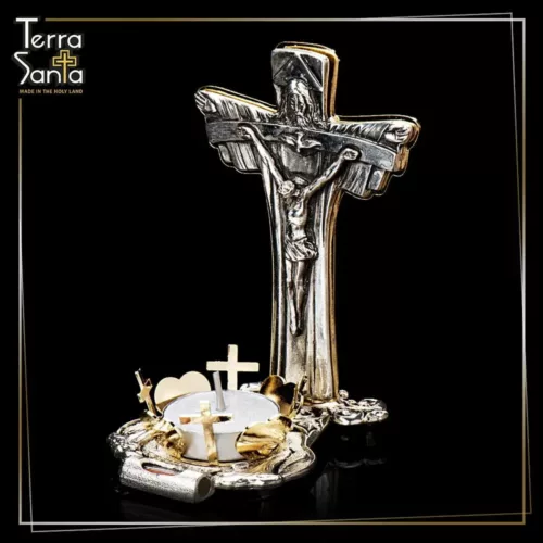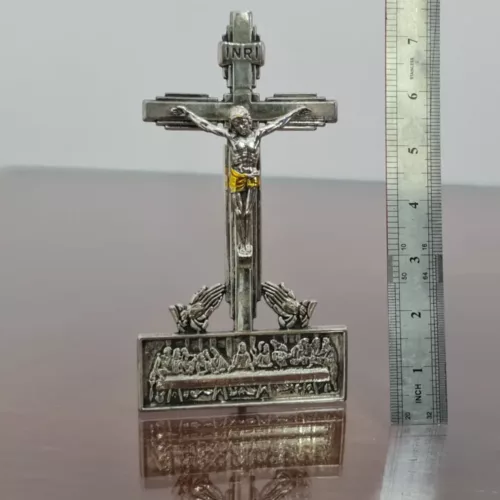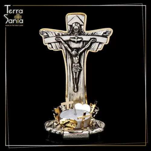 Table Standing Crucifix with Candle Hand made of Zinc & Sterling Silver Plating
