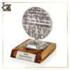 The decor is hand-made in Israel of zinc alloy metal and the plating is sterling silver 925. The decor is on a wooden base and on it you can put a plaque with a personal or Holiday greeting on it.