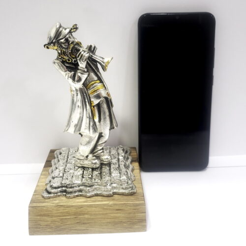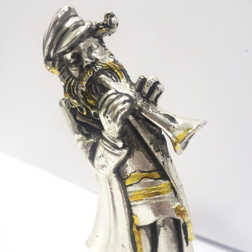 Table Decor Statue Klezmer Hassidic Jewish Dancing Trumpet Musician – Sterling Silver 925 Plating