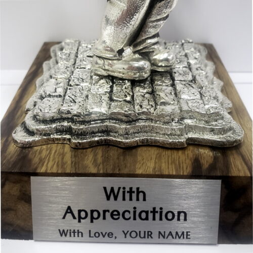 The decor is hand-made in Israel of zinc alloy metal and the plating is sterling silver 925. On its wooden base, you can add a plaque with a personal greeting or a few words as a gift.
