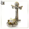Crucifijo de pie de mesa con vela Hecho a mano de zinc y chapado en plata de ley